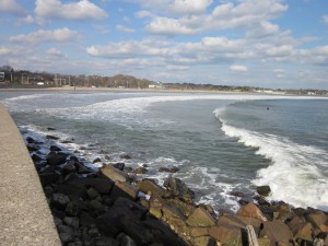 Walking the Narragansett RI sea wall at the Pier